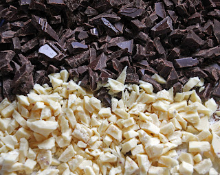 - Use a double boiler to melt butter, the chocolate and white chips over very low heat. If you do not have a double boiler, place a heat-proof bowl over a pot of boiling water. Place chocolate and butter in bowl and stir until melted, stirring constantly. Remove from heat and put to the side.